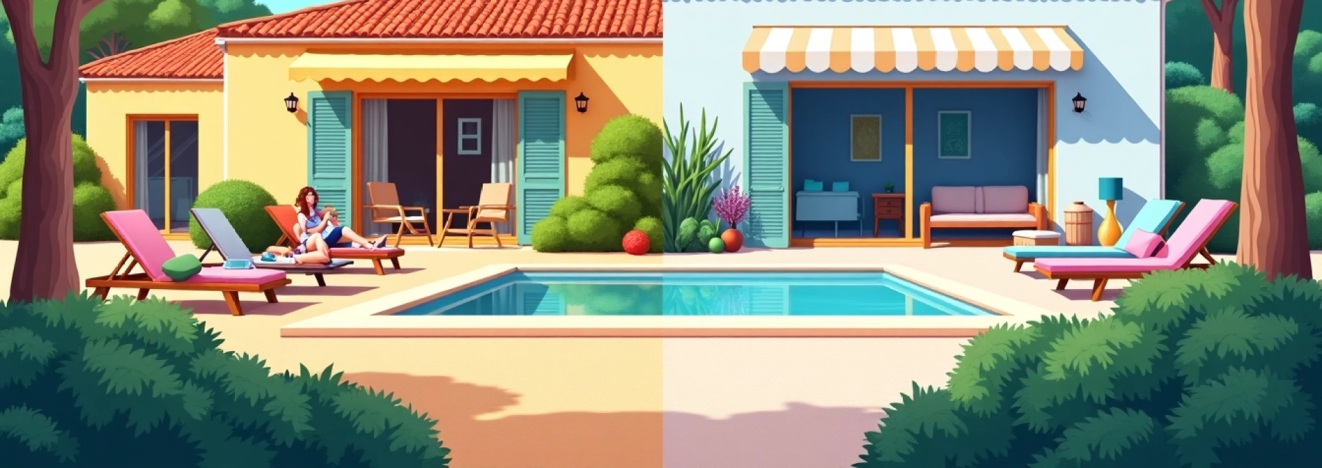 - Aménagement du jardin et de la terrasse : salon de jardin, barbecue, éclairage, plantes et fleurs pour créer une ambiance chaleureuse et conviviale. Un jardin bien entretenu avec des éléments de confort et de décoration est un atout majeur pour les locations saisonnières.